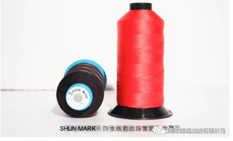 防水(shuǐ)線工藝:縫紉線染整後加入潑水(shuǐ)劑處理(lǐ),烘烤而成。分邦迪防水(shuǐ)線,滌綸高(gāo)強防水(shuǐ)線,SP防水(shuǐ)線;