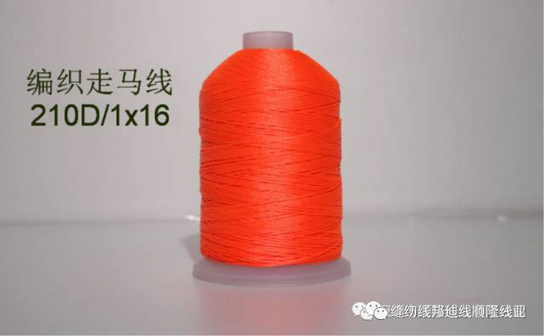 編織走馬線的工藝:編織走馬線,又叫穿線,手縫穿線。由滌綸長絲,在走馬機上(shàng)編織成線,以16軸走馬機編織成16股常用,如用16根210D滌綸長絲編成,用21D/1X