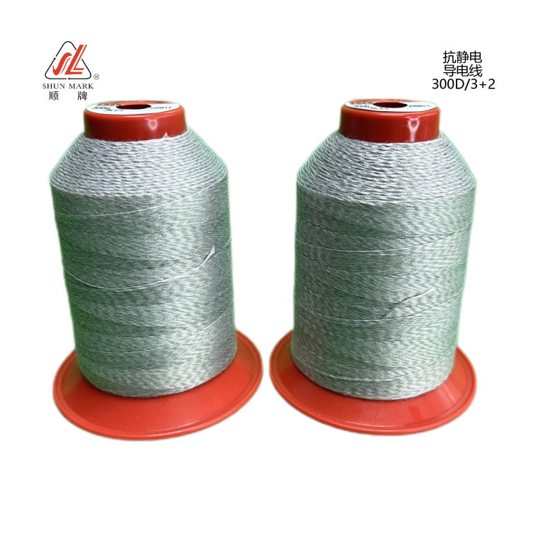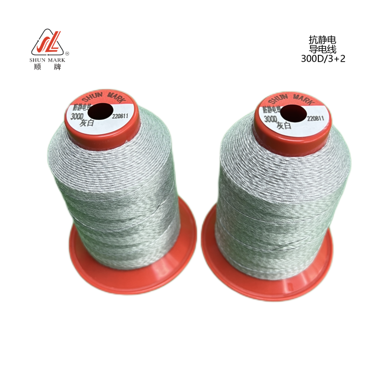 順牌抗靜電(diàn)線300D/3+2滌綸+不鏽鋼纖維絲合股導線縫紉線灰白色