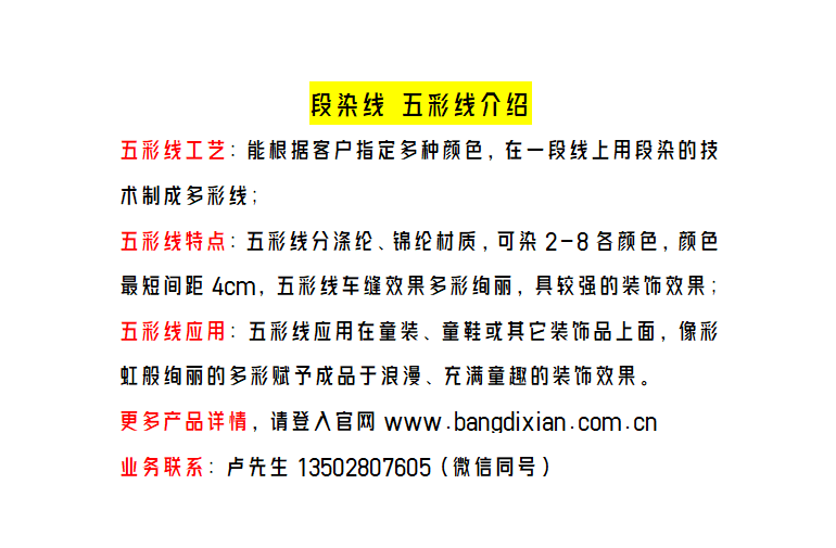 特種縫紉線之段染線尼龍邦迪線染成五彩線N66五彩邦迪線
