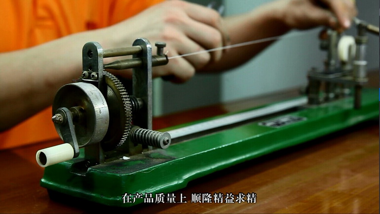 4.5用針穿過股線,用手順時(shí)針搖動撚度儀從左拉向右端,直至線上(shàng)沒有(yǒu)撚度為(wèi)止。