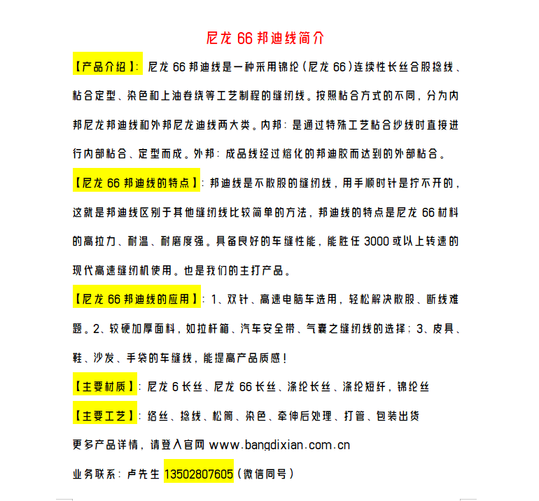 邦迪線,PA66邦迪線,尼龍66外邦迪線,錦綸邦迪線,66邦迪線