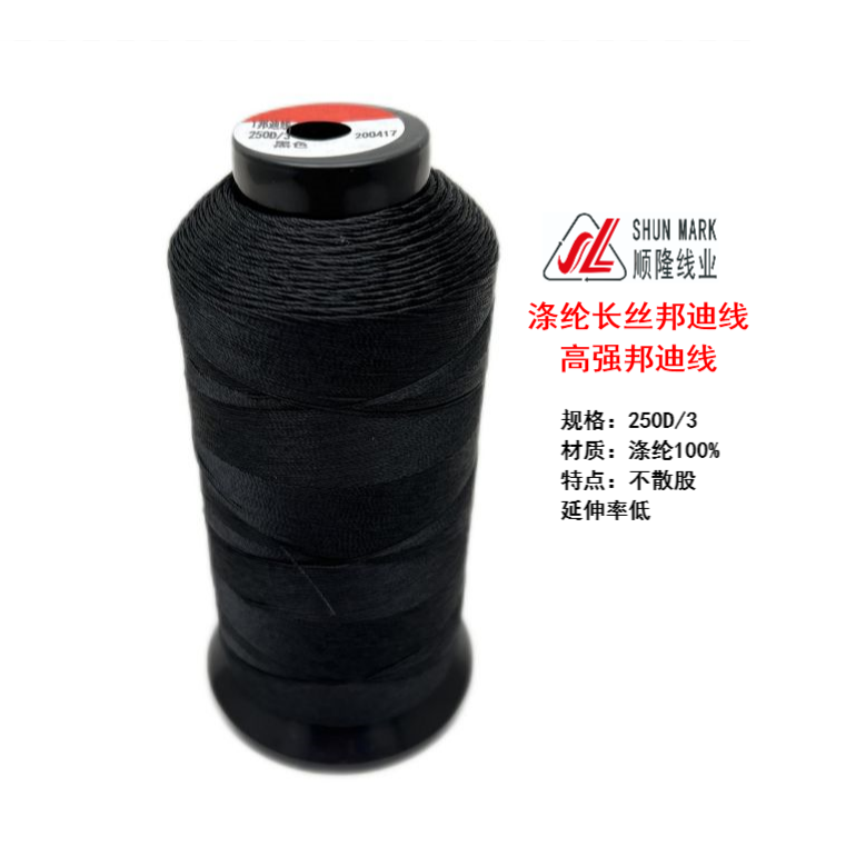 滌綸高(gāo)強邦迪線的特點:滌綸高(gāo)強邦迪線是不散股的縫紉線,特點是彈性小(xiǎo),拉斷延伸率6-10%,拉力好、耐磨、色牢度好。