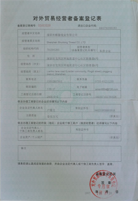 • 縫紉線5大(dà)色系不含甲醛證書(shū)